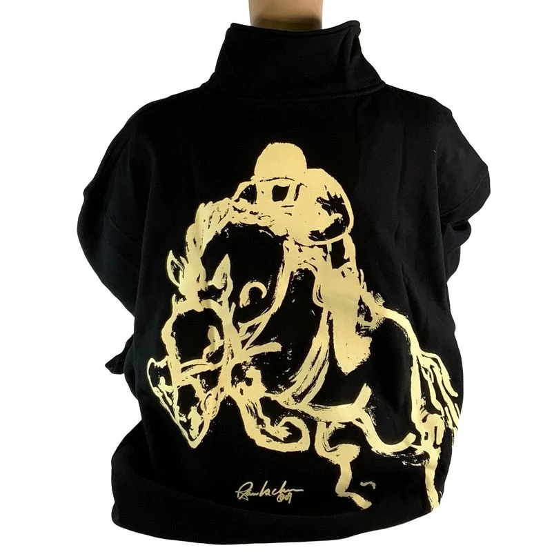 Animals to Wear clothing is unique because it features original artwork by Rebecca Raubacher, hand silk screened onto high-quality apparel. fan favorite. “Go Baby” is a personal favorite drawing that Rebecca did of her daughter on their Connemara mare, Kent’s Teasel. This drawing was done as the pair were going recognized training at Fair Hill. Always an exciting pair to watch.