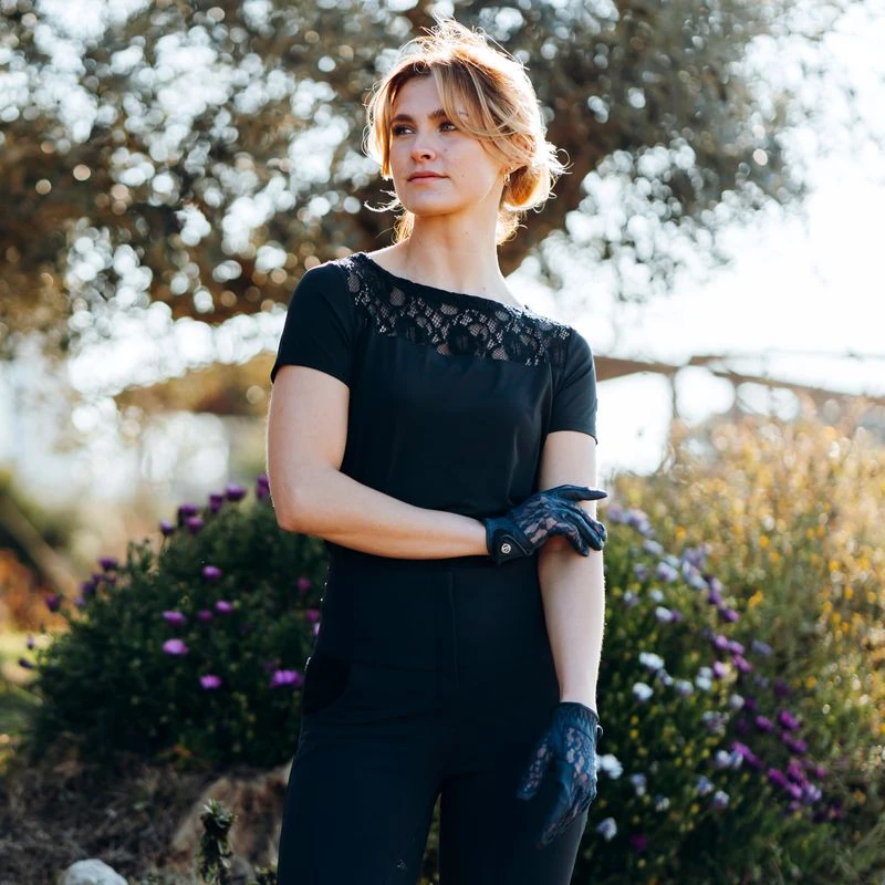 B Vertigo Women’s Cooling Lace Riding Gloves – Dark Navy