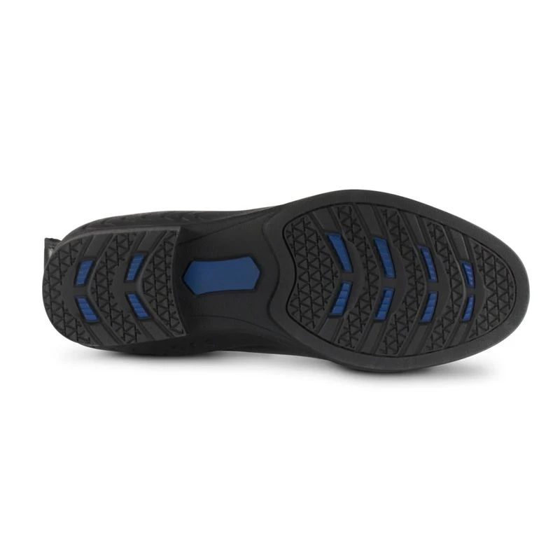 The durable sole and insole are ergonomically shaped and adapt to your foot perfectly. A front zip and elastic at the sides, spur rest and pull-strap make putting them on super easy. Functional quick-dry lining keeps your feet dry, whether you are in the saddle, stable and outside. Classic and easy!