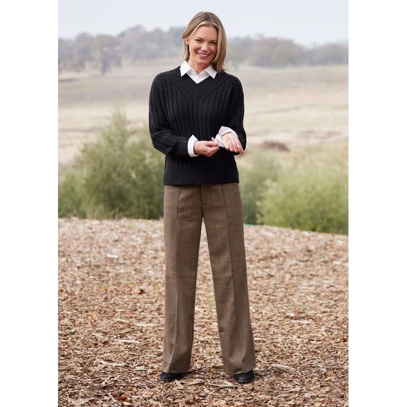 EQL Women’s Brittany Cable Knit V-Neck Sweater – Black
