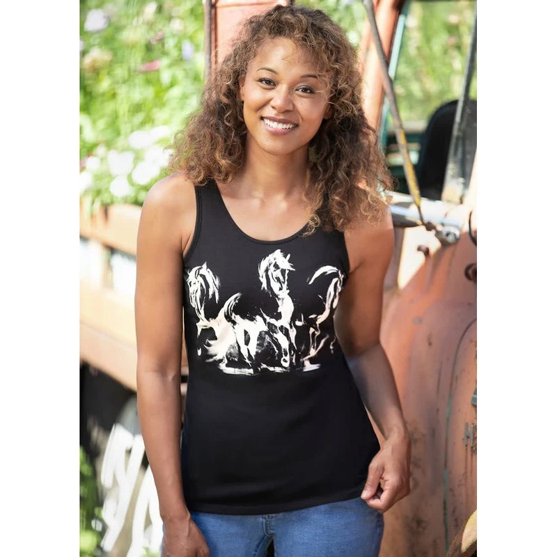 Let your love of horses leap off this organic cotton knit in a striking swirl of manes and tails brought to life by fine artist Elise Genest, a specialist in capturing the elegance and power of classical equines