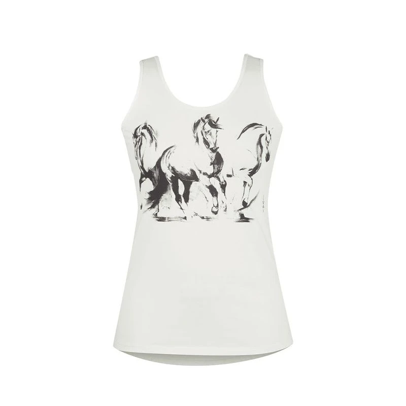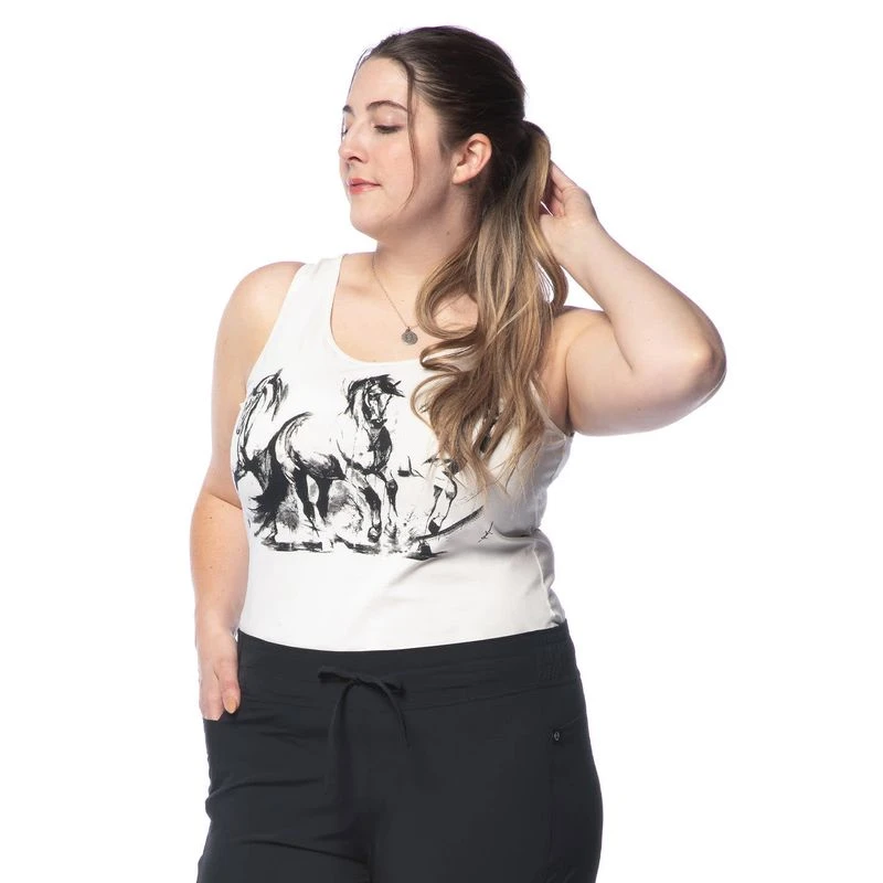 Let your love of horses leap off this organic cotton knit in a striking swirl of manes and tails brought to life by fine artist Elise Genest, a specialist in capturing the elegance and power of classical equines