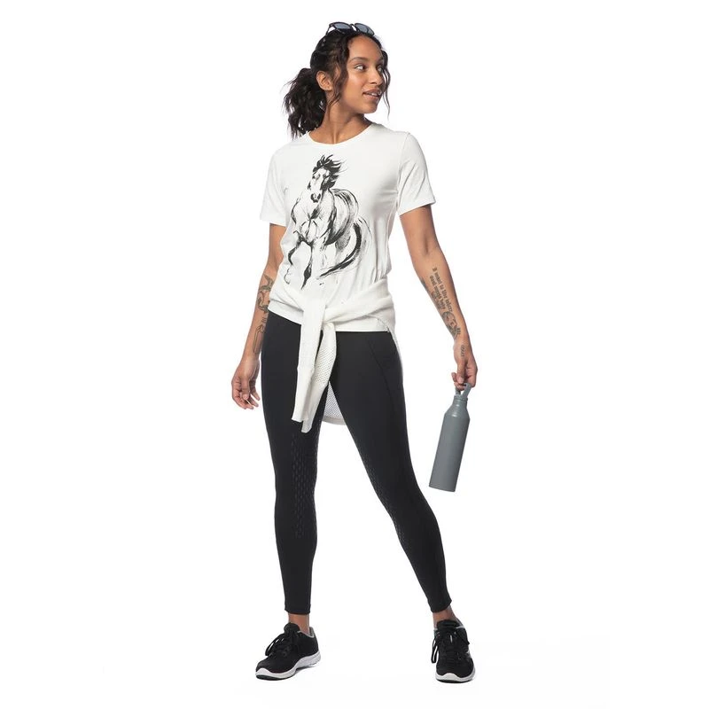 Stunning sketches by fine artist Elise Genest, a specialist in capturing the elegance and power of classical equines, make these super-soft tees as eye-catching as they are comfortable. Sporty, relaxed fit and hip length coverage makes these works of art easy to wear year-round.