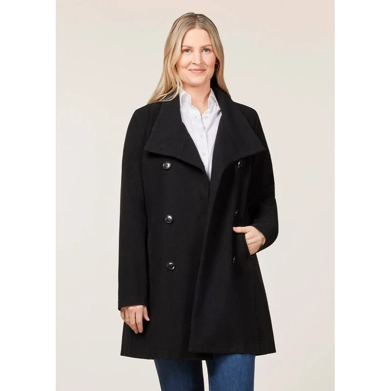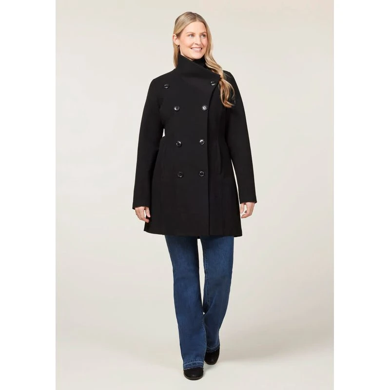 Cheers to a supremely comfortable commute. This gorgeous, double-breasted coat with a modern stand collar brings the glam when you’re on the move.
