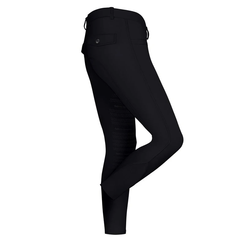 These sporty men’s breeches are made of a high quality four was stretch fabric. They have two pockets o the front and two back flap pockets. The non-slip waistband has silicon on the inside to ensure your shirt stays tucked, while the silicon extended knee patches give you perfect grip in the saddle.