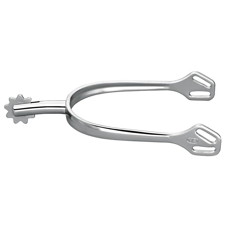 This spur features a 40mm flat end neck with a 9 point rowel. It has unisex sizing that will fit both men and women.
