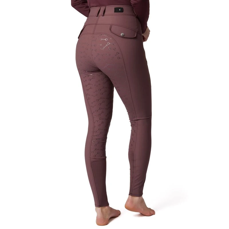 Andrea Breeches are decorated with flattering seams down the front that elongate your legs. The waistband with three buttons is higher in the front, adding a stylish detail. Two zipper pockets offer space for your belongings, and the silicone full seat holds you in the saddle.