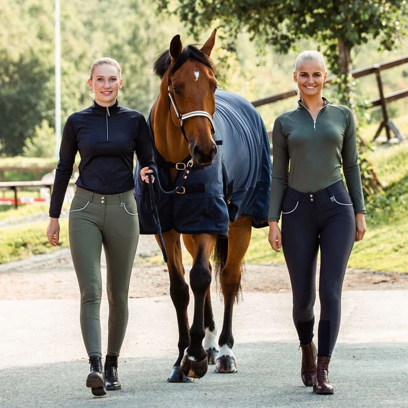 The Horze Carolina Training Shirt is made from breathable fabric with extra mesh at the armpit to give perfect ventilation. Long arms give warmth while the functional material keeps you from overheating. The shirt closes with a shiny silver zipper.