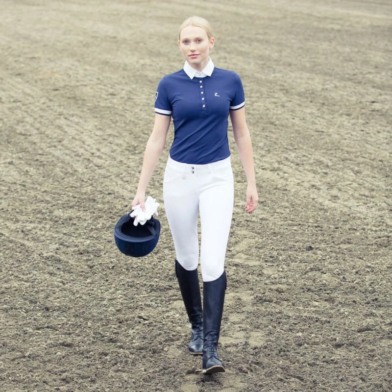 The Horze Grand Prix Full Seat Breeches with Silicone Grip are great breeches whether you’re riding in a clinic, a lesson, or in the show jumper arena. This new and improved classic breech will add a professional touch to your look. The cut is elegant, formal, and timeless with a silicone full seat that provides excellent grip in the saddle, a comfortable, contoured medium waistband that adds to the whole package, and a front zip with 2 front pockets. The Women’s Grand Prix Silicone Grip Full Seat Breeches are made from a functional, breathable fabric that has a water and dirt repellent surface with UV and UPF 50+ protection. Dust and grime won’t stick!