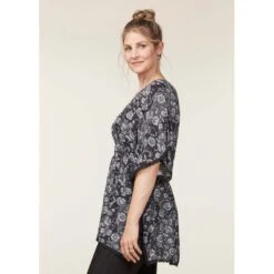 EQL Women’s Ecovero Boheme Tunic Dress – Black Patchwork Paisley