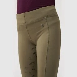 Horze Kids’ Gillian Silicone Full Seat Tights – Beetle Khaki Green
