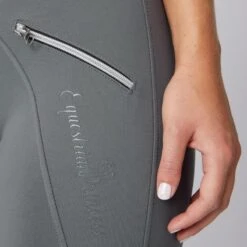Horze Women’s Enora Winter Full Seat Tights W/Shiny Zippers – Grey