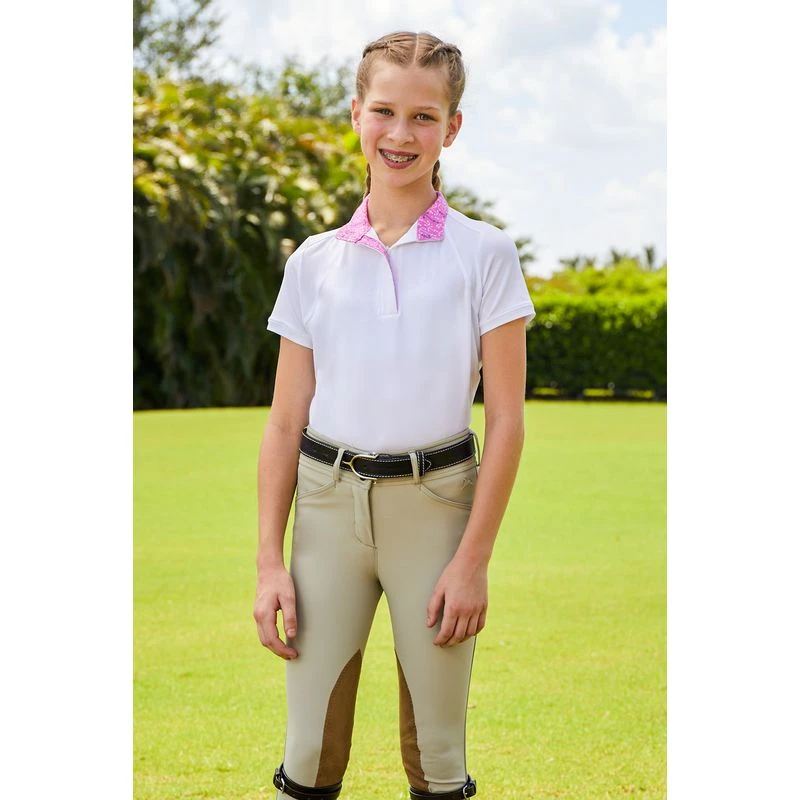 The fabric features 37.5 patented thermo regulation technology which has proven to help manage its core temperature and therefore, increase stamina. It keeps your young rider comfortable by helping your body to maintain an optimum core temperature of 37.5 Celsius (99.5 Fahrenheit) which is ideal for peak athletic performance. The particles are naturally derived and work for the life of the product (it will never wash out!) This style also features multiple trim fabric options and a zipper placket with snap collar to modernize this traditional look.