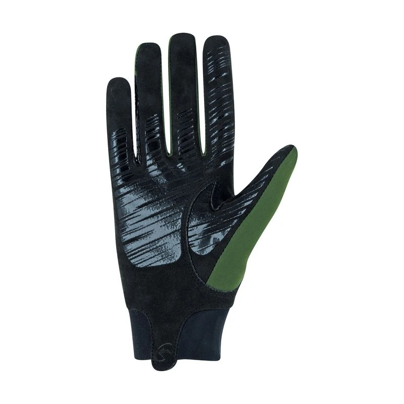 The palm is made from tactile ECO.SENSE, a soft and flexible synthetic material for plenty of sensitivity on the reins. Generous silicone grip on the palm ensures a non-slip grip no matter the weather. An elastic cuff combined with a soft, double layer Lycra insert on the wrist makes for a perfect and comfortable fit. On the back of the hand the Roeckl logo is made from wood derived from timber processing waste, creating the stylish highlight of the Manivas sporty and elegant design. As its grain is unique, every glove is one of a kind!