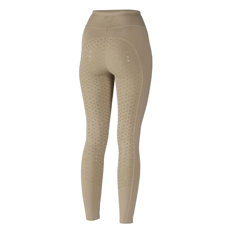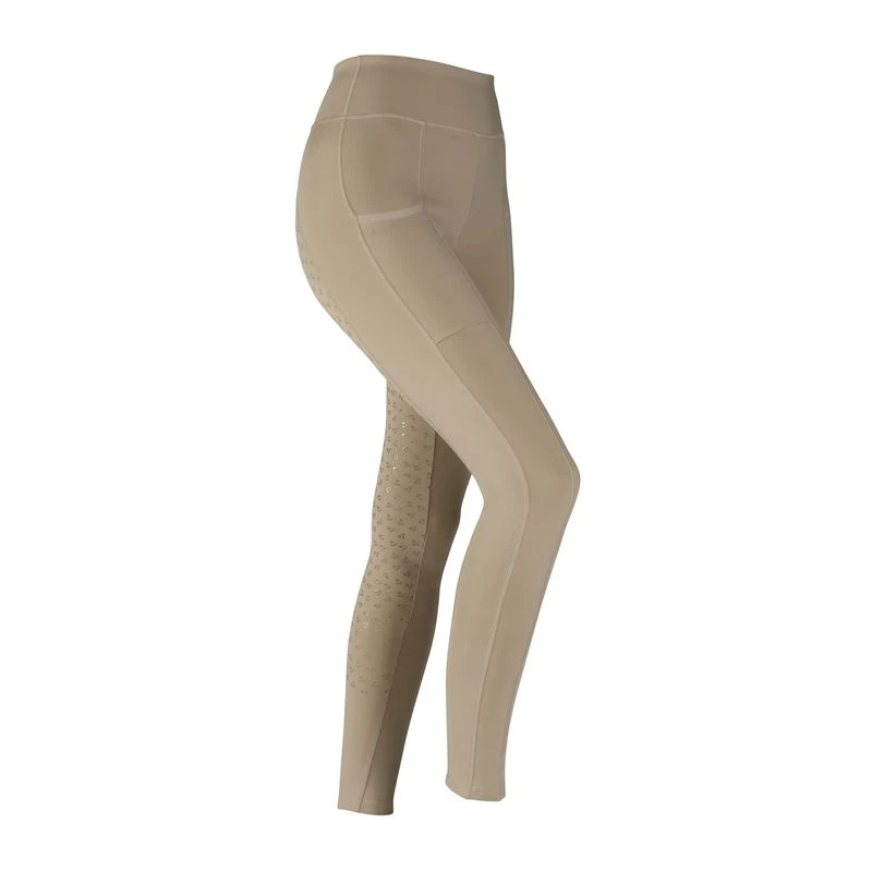 These tights have the substantial feel of breeches with traditional competitive colors and a silicone full seat. The have a high rise pull on waist, and cuff bottoms making them super comfortable. The cell phone pocket on the side is super convenient, but not obvious.