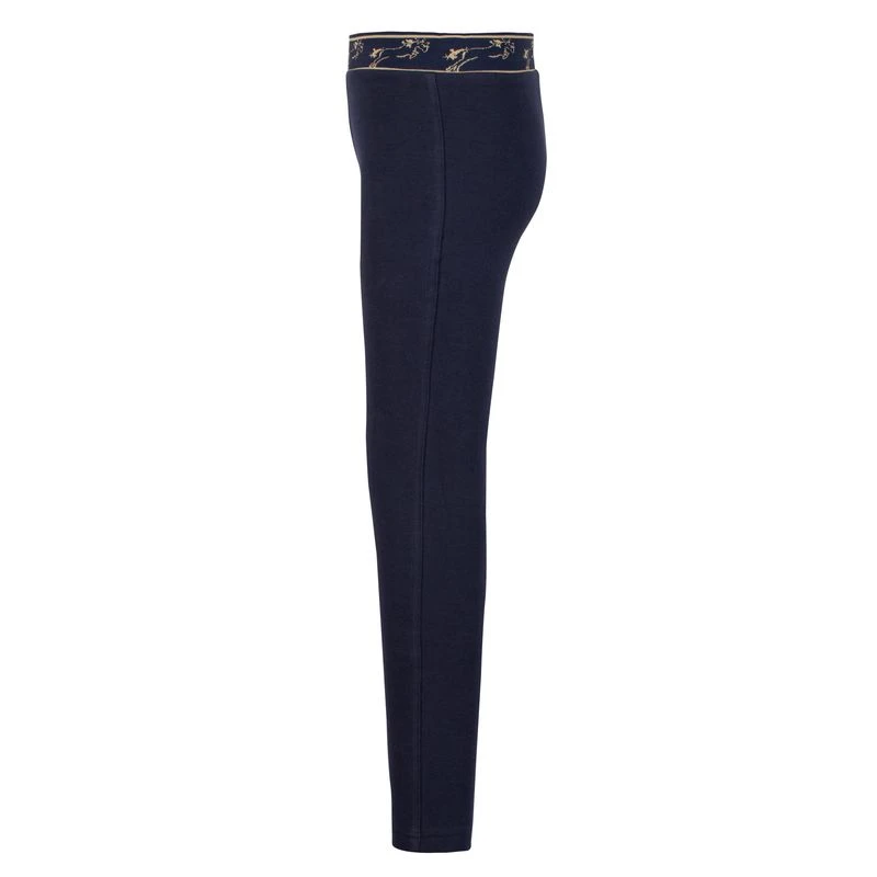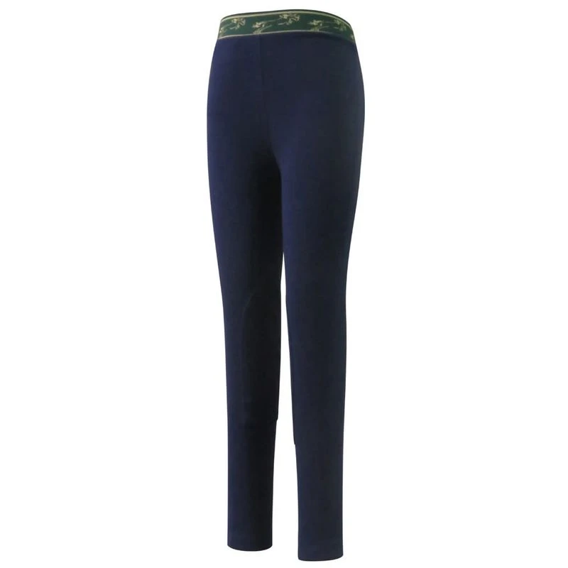 Made from soft cotton and spandex these schooling tights offer self-fabric knee patches an inside pocket and an elastic waistband featuring a jumping horse pattern. You will find the comfortable Cotton Schoolers to be the most affordable choice in riding tights.