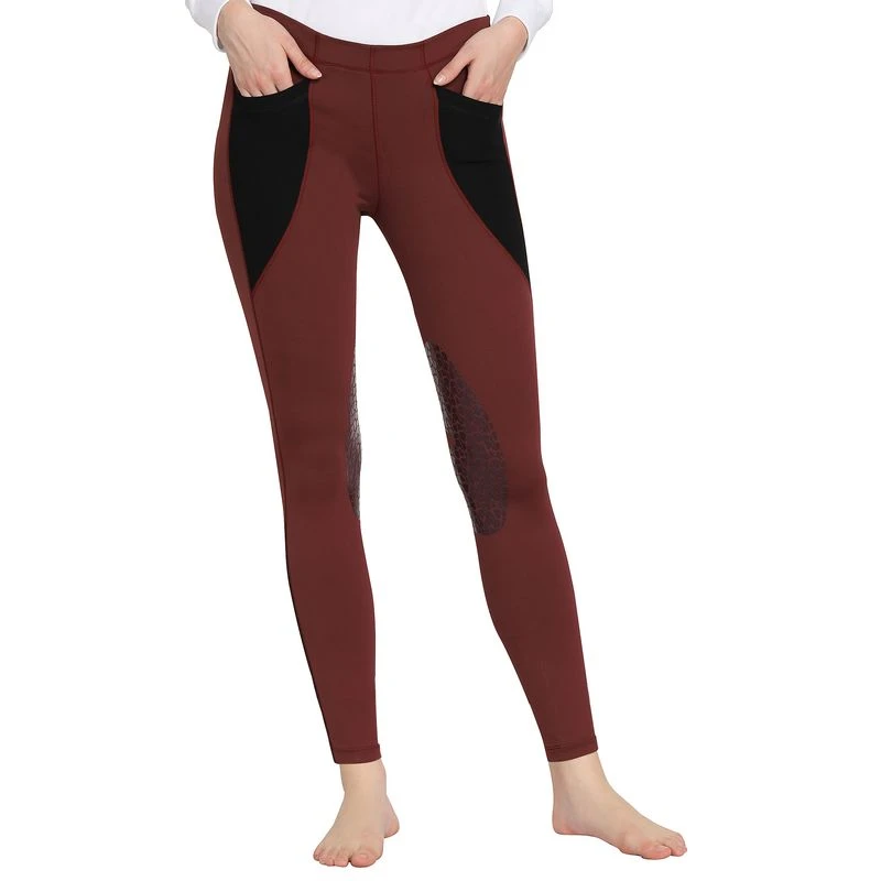 The Tatum Tights will feel like your favorite pair of yoga leggings. Features such as crackle silicone knee patches for friction and extended mesh bottoms are functional details offered on the Tatum Tights. Vented pockets are convenient to hold small items and your smartphone while tacking up and barn work.